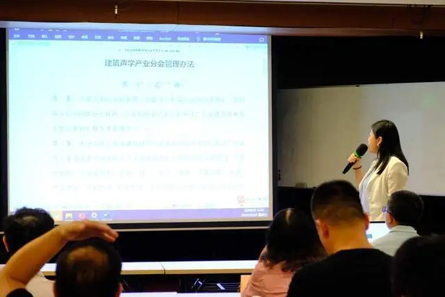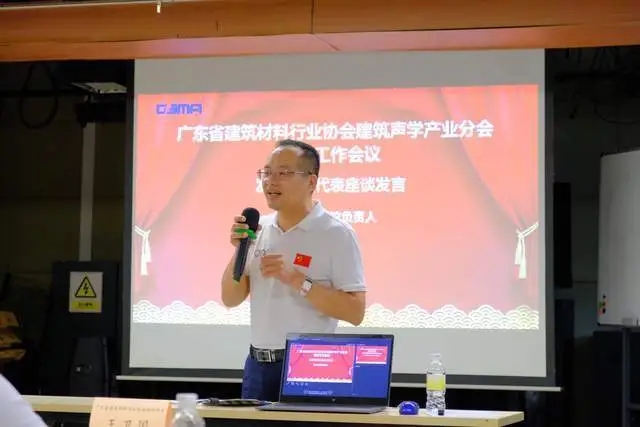 廣東省建筑材料行業(yè)協(xié)會聯(lián)合黨支部書記、常務(wù)副會長陳環(huán)作總結(jié)發(fā)言。陳會長表示,建筑聲學(xué)作為功能性和提高人們品質(zhì)生活的產(chǎn)業(yè),廣東是大省,組建成立廣東省建材行業(yè)建筑聲學(xué)產(chǎn)業(yè)分會很有必要、很有意義。陳會長希望,建筑聲學(xué)產(chǎn)業(yè)分會能夠結(jié)合我省高質(zhì)量發(fā)展相關(guān)政策要求,引導(dǎo)建筑聲學(xué)產(chǎn)業(yè)進行升級改造,通過技術(shù)創(chuàng)新等舉措,推動行業(yè)不斷向綠色、高質(zhì)量發(fā)展方向前進;同時,陳會長也希望能夠通過建筑聲學(xué)產(chǎn)業(yè)分會的建立,代表建筑聲學(xué)“大家庭”發(fā)聲,代表行業(yè)共同利益,一起為行業(yè)的進步攜手努力;最后,也希望即將成立的分會能夠按照省社會組織管理局、省建材協(xié)會章程等有關(guān)要求,規(guī)范化運作管理,逐漸發(fā)展壯大,為建材行業(yè)的綠色高質(zhì)量發(fā)展提供支撐、貢獻力量!