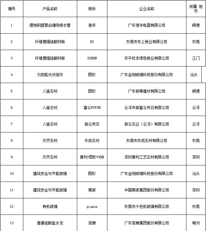 2010年廣東省名牌產(chǎn)品(工業(yè)類)建材及其相關(guān)產(chǎn)品初選名單公示